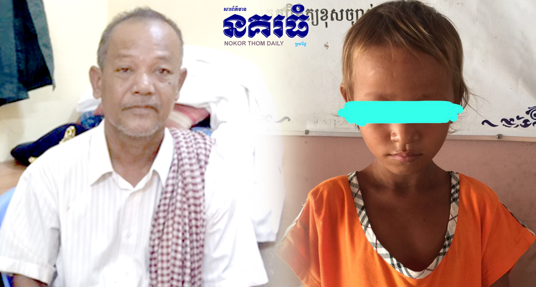 ភ្នំពេញ : សមត្ថកិច្ចឃាត់ខ្លួនបុរសវ័យចំនាស់ម្នាក់រំលោភក្មេងស្រីអាយុ៩ឆ្នាំ ពេលម្ដាយក្មេងស្រីរងគ្រោះដឹងធ្លាយរឿង ក៏ប្រញាប់ដឹកដៃកូនស្រីទៅដាក់ពាក្យបណ្ដឹង ដើម្បីឲ្យសមត្ថកិច្ចចាត់ការតាមផ្លូវច្បាប់ កាលវេលាម៉ោង១០និង៣០នាទីព្រឹកថ្ងៃទី២៨ ខែកក្កដា ឆ្នាំ២០១៧ ស្ថិតនៅភូមិព្រែកធំ២ សង្កាត់ក្បាលកោះ ខណ្ឌច្បារអំពៅ។