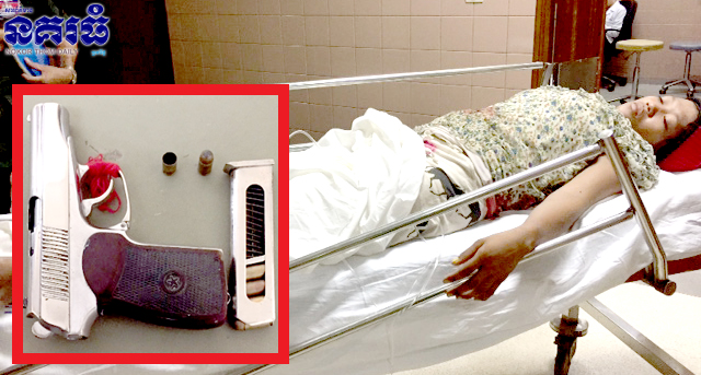 ឲ្យ ខឹងបានដកកាំភ្លើងបាញ់មេការ សំណាងអាក្រក់អីបានជាត្រូវចំស្ត្រីម្នាក់ដែលឈរនៅតាមផ្លូវពីក្រោយ បណ្តាលឲ្យរងរបួសធ្ងន់ ហេតុការណ៍នេះបានកើតឡើងកាលពីវេលាម៉ោង២និង៣០នាទីរំលងអាធ្រាត្ រឈានចូលថ្ងៃទី១៤ ខែសីហា ឆ្នាំ២០១៧ តាមបណ្តោយផ្លូវទំនប់៧០ នៅចំណុចរ៉ារទះភ្លើង ស្ថិតនៅភូមិចុងខ្សាច់ សង្កាត់ទួលសង្កែ ខណ្ឌឬស្សីកែវ។