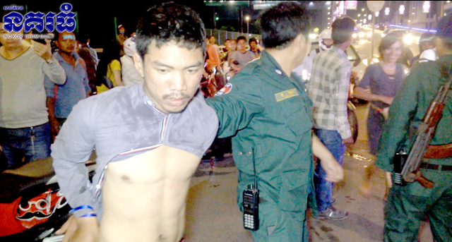 ជនសង្ស័យដែលឃាត់បានមានឈ្មោះ ស៊ិន វិឆ័យ អាយុ២០ឆ្នាំ ស្នាក់នៅផ្ទះជួល នៅសង្កាត់ផ្សារដេប៉ូ១ ខណ្ឌទួលគោក ។ ចំណែកជនសង្ស័យម្នាក់ទៀតរត់គេចខ្លួនបាត់ស្រមោល ។ ជនសង្ស័យទាំងពីរនាក់ជិះម៉ូតូមួយគ្រឿងម៉ាកហុងដា Beat ពណ៍សលាយខៀវ អត់មានស្លាកលេខ។