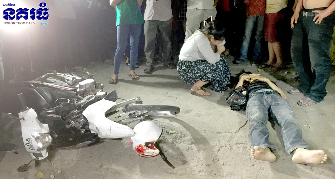ភ្នំពេញ ៖ បុរសម្នាក់កំពុងតែជិះម៉ូតូធ្វើដំណើរតាមផ្លូវ ក៍ស្រាប់តែមានបុរសបីនាក់ទៀត ដែលជាជនជាតិវៀតណាម បានជិះម៉ូតូមួយគ្រឿងបញ្ច្រាសទិសដៅចរាចរណ៍ បានជ្រុលទៅបុកចំពីមុខពេញហឹង បណ្តាលឲ្យស្លាប់ម្នាក់ និងរងរបួសធ្ងន់បីនាក់ ហេតុការណ៍នេះបានកើតឡើងនៅវេលាម៉ោង៩យប់ ថ្ងៃទី០៦ ខែកញ្ញា ឆ្នាំ២០១៧ ទុលមុខអតីតរោងចក្រតាក់ហ្វាន់ ផ្លូវជាតិលេខ២ ភូមិព្រែកតានូ សង្កាត់ចាក់អង្រែលើ ខណ្ឌមានជ័យ។