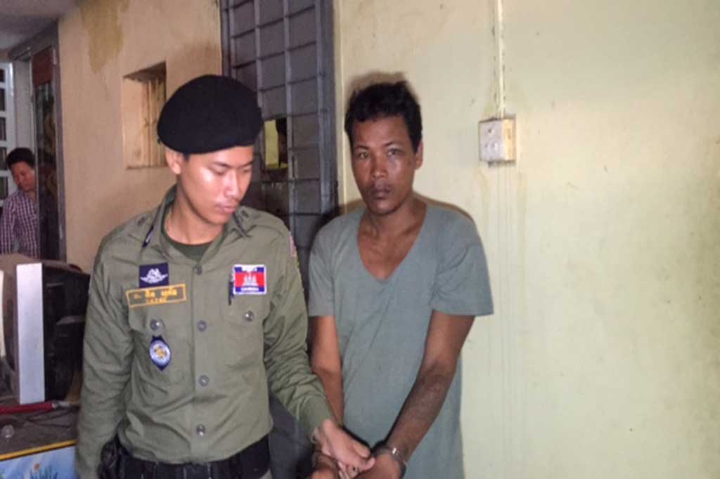 តាមសម្តីរបស់បុរសជាប្តីបានឲ្យដឹងថា កាលពីថ្ងៃទី២៤ ខែកក្កដា គាត់មិនបានទៅរត់ម៉ូតូឌុបទេ គឺនៅអង្គុយផឹកស្រាសជាមួយមិត្តភក្កិ២នាក់ទៀត ដោយផឹកទាំងពីព្រឹកផឹកអស់ស្រា ៤លីត្រស្រវឹងក៏បានទៅផ្ទះដេក ។ ខណៈពេលទៅដល់ផ្ទះ ប្រពន្ធបានខ្ចីទូរស័ព្ទរបស់ខ្លួនយកតេទូរស័ព្ទរកបងប្អូន រួចហើយបានយកទូរស័ព្ទទៅទុក លុះពេលគាត់ដេកបានមួយស្របក់ដឹងខ្លួនវិញ មានបំណងទៅយកទូរស័ព្ទពីប្រពន្ធវិញ ដើម្បីទូរស័ព្ទរកមិត្តភក្កិផឹកស្រាទៀត តែប្រពន្ធមិនព្រមឲ្យ ដោយប្រពន្ធមិនចង់ឲ្យប្តីទៅផឹកទៀតទេ ទើបមិនព្រមឲ្យទូរស័ព្ទ ធ្វើឲ្យប្តីខឹងបានដេញវាយប្រពន្ធ ក៏ត្រូវប្រពន្ធភ័យរត់ទៅចូលក្នុងផ្ទះអ្នកជិតហើយបិទ ទ្វារជិត បុរសជាប្តីមិនហ៊ានចូលទៅតាម បានត្រឡប់មកវិញខឹងប្រពន្ធដើរទៅយកកាំបិត បុ័ងតោមកកាប់ទ្វារបណ្តាលឲ្យបែកកញ្ចក់ទ្វារមួយផ្ទាំងរបស់អ្នកជិតខាង ។