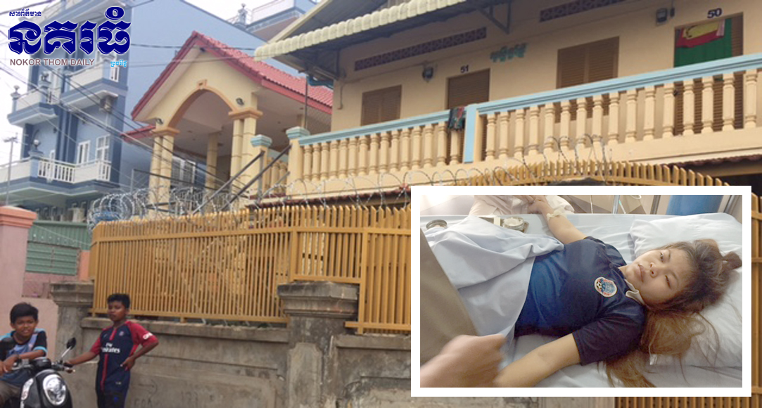 ភ្នំពេញ ៖ នារីវ័យក្មេងម្នាក់ ខណៈដែលកំពុងអង្គុយនៅមាត់កាំជណ្តើរ ស្រាប់តែធ្លាក់ដាំដូងចុះមកដី បណ្តាលឲ្យរងរបួស បង្កឲ្យភ្ញាក់ផ្អើល នឹកស្មានតែមានវិបត្តិរឿងអ្វីមួយ ហើយលោតពីលើផ្ទះ តាមពិតនារីខាងលើមិនស្រួលខ្លួនទៅអង្គុយមាត់ជណ្តើរ ស្រាប់តែងងឹតវិលមុខដាំដូងធ្លាក់ កាលពីវេលាម៉ោង៣រសៀល ថ្ងៃទី១៤ ខែកញ្ញា ឆ្នាំ២០១៧ ស្ថិតនៅបន្ទប់ផ្ទះជួលជាន់ទី១ ក្នុងភូមិព្រៃព្រីងជើង សង្កាត់ចោមចៅ៣ ខណ្ឌពោធិ៍សែនជ័យ ។