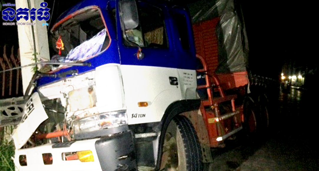 ភ្នំពេញ ៖ បុរសម្នាក់បើករថយន្តសណ្តោងធុនធំមួយគ្រឿង បោះពួយយ៉ាងលឿន ខណៈពេលដែលមេឃកំពុងតែធ្លាក់ភ្លៀងរអិលរេចង្កូតទៅបុកបង្គោលភ្លើងពេញទំហឹង បង្កឲ្យមានការភ្ញាក់ផ្អើលដល់សមត្ថកិច្ចកាលពីវេលាម៉ោង១១យប់ ថ្ងៃទី១៤ ខែកញ្ញា ឆ្នាំ២០១៧ នៅត្រង់ចំណុចខាងត្បូង ស្តុបណតប្រ៊ីត ចម្ងាយប្រមាណ២០០ម៉ែត្រ តាមបណ្តោយផ្លូវណតប្រ៊ីត ស្ថិតក្នុងសង្កាត់អូរបែកក្អម ខណ្ឌសែនសុខ។