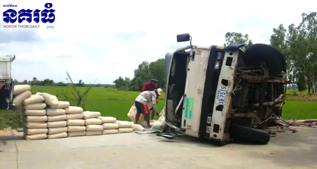 ភ្នំពេញ៖ រថយន្តម៉ាកហ៊ីយ៉ាន់ដាយ ដឹកស៊ីម៉ងត៍ខេស៊ីមេន មួយគ្រឿងបានបើកបរក្នុងល្បឿនលឿន ហើយទាក់កង់ក្រោយនឹងថ្មស្ទាក់ផ្លូវ បណ្តាលឲ្យដាច់កង់ទាំងគូ រួចទាញចង្កូចក្រឡាប់ចាក់ស៊ីម៉ងត៍ចោល ។ គ្រោះថ្នាក់ចរាចរណ៍នេះបានកើតឡើងកាលពីវេលាម៉ោង៩និង៣០នាទីព្រឹក ថ្ងៃទី១៥ ខែកញ្ញា ឆ្នាំ២០១៧ នៅតាមផ្លូវលេខ៤២ ក្នុងភូមិបឹងកាចាប់សង្កាត់ពន្សាំង ខណ្ឌព្រែកព្នៅ ។
