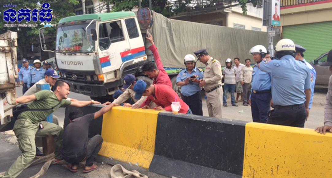 បុរសម្នាក់ជាអ្នកបើកបរ មានឈ្មោះ ធី សុខនី ភេទប្រុស អាយុ២៧ឆ្នាំ ស្នាក់នៅភូមិកោះទាវ ឃុំ ព្រៃសែន ស្រុកកោះធំ ខេត្តកណ្ដាល បានប្រាប់សមត្ថកិច្ចថា មុនពេលកើតហេតុខ្លួនដឹកថ្នាំលាបផ្ទះ ចំណុះ២០តោន ចេញពីជ្រៃធំ ព្រំដែនវៀតណាម ចេញមកភ្នំពេញ ហើយសីុឈ្នួលដឹកពីថៅកែទំនិញក្នុងតម្លៃ៦០មឺុនរៀល ហើយលុះមកដល់ឃ្លាំង ក៏រៀបថយចូលដាក់ទំនិញ ចៃដន្យរថយន្តគាត់ខូចបូមចង្កូត ទើបរថយន្តស្ទុះទៅមុខបុកទ្រូងពុះចែកផ្លូវ ប៉ុន្តែរថយន្តមិនទាន់អស់លឿនថយក្រោយ បុកជញ្ជាំងឃ្លាំងបែកឥដ្ឋការ៉ូថែមទៀត ក្រោយមកសមត្ថកិច្ចចុះមកកន្លែងកើតហេតុឃាត់គាត់សងថ្លៃខូចខាតតែម្ដង ហើយរូបគាត់ជាម្ចាស់រថយន្តទទួលស្គាល់ថាការខូចខាតមកពីខ្លួនជាអ្នកបង្កមែន តែនេះទ្រូងផ្លូវមិនបានខូចខាតបែកបាក់ជាពីរទៅបីកំណាត់ គ្រាន់តែបែកតិចតួចបំផុត និងវៀចចេញពីជួរមិនស្មើប៉ុណ្ណោះ សង្ឃឹមថា សមត្ថកិច្ចជំនាញអធ្យាស្រ័យដល់រូបគាត់ជាម្ចាស់រថយន្តសីុឈ្នួលដឹកទំនិញសល់ប្រាក់កំរៃបន្តិចបន្តួចទេ ។