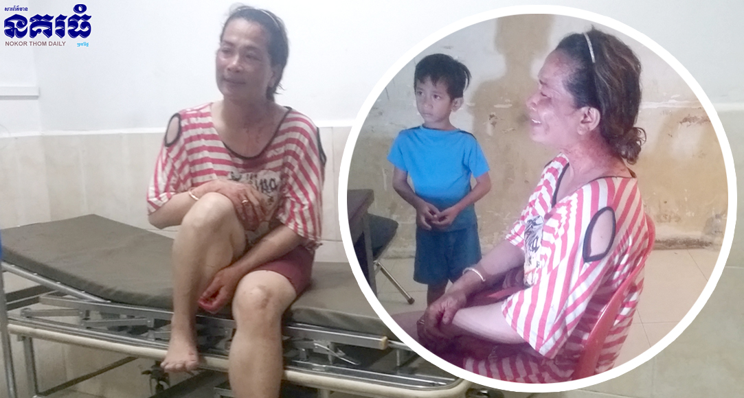 នារីជាប្រពន្ធបានបន្តថា ពេលប្តីយកកូនមកដល់ផ្ទះ ស្រាប់តែប្តីខឹងគាត់ទូរស័ព្ទហៅ ក៏បានជេរប្រមាថគាត់ ធ្វើឲ្យគាត់ទ្រាំមិនបាន ក៏បានតមាត់ឈ្លោះប្រកែកគ្នា រហូតបុរសជាប្តីស្ទុះទៅយកអង្រែបុកគ្រឿងវាយក្បាលគាត់ពីក្រោយបែកក្បាលហូរឈាមតែម្តង ។