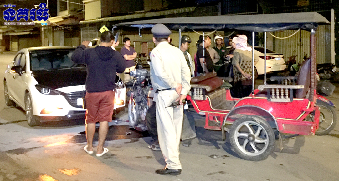 ភ្នំពេញ ៖ បុរសជាអ្នករត់រ៉ឺម៉កម៉ូតូម្នាក់ចេញពីផឹកស៊ី ស្រវឹងទោរទន់ បើករ៉ឺម៉កម៉ូតូលឿនពេកជ្រុលទៅបុករថយន្តម៉ាស្តា ស៊េរីឆ្នាំ២០១៨ មួយគ្រឿង ដែលបើកបញ្ច្រាសទិសគ្នា បណ្តាលឲ្យរងការខូចខាត តែសំណាងល្អមិនមានគ្រោះថ្នាក់ដល់មនុស្ស ហេតុការណ៍នេះកើតឡើងនៅវេលាម៉ោង១១និង៥០នាទីយប់ ថ្ងៃទី៣ ខែតុលា ឆ្នាំ២០១៧ ចំណុចផ្លូវសុធារស កែងនិងមហាវិថីព្រះនរោតម្ត សង្កាត់ទន្លេបាសាក់ ខណ្ឌចំការមន ។
