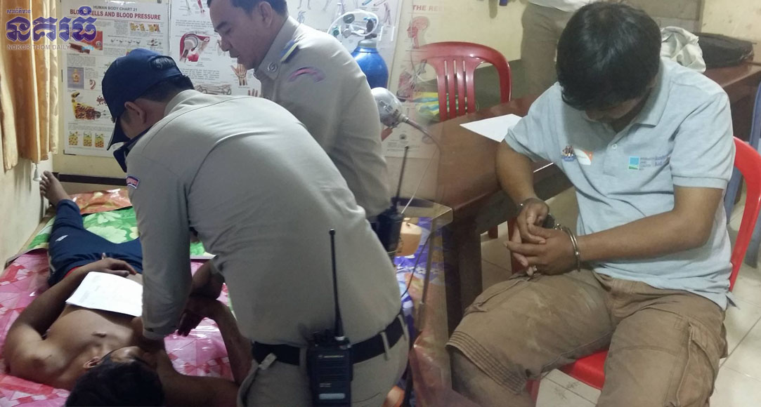 បន្ទាប់មកភាគីខាងរងគ្រោះបានប្តឹងសមត្ថកិច្ចមកអន្តរាគមន៍ ហើយឃាត់ជនសង្ស័យទៅសួរនាំភ្លាមៗផងដែរ ។ បន្ទាប់មកសមត្ថកិច្ចបានទៅទទួលពាក្យបណ្តឹងនៅមន្ទីរពេទ្យ ដោយមានស្នាមរយះមុខចំហៀងខាងឆ្វេង និងខ្នងជាច្រើនកន្លែង ដេរចំនួន២៥ថ្នេរនៅខាងមុខ ហើយដោយឡែកជនរងគ្រោះសន្លប់ មិនទាន់ដឹងខ្លួនមិនបានទទួលពាក្យបណ្តឹងឡើយ ។