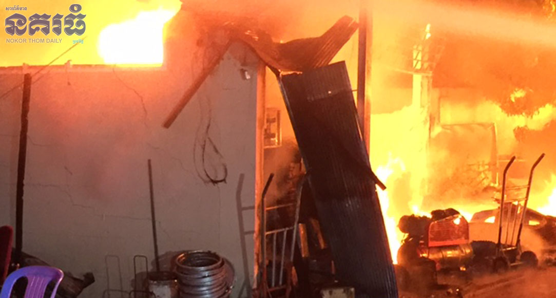 ភ្នំពេញ៖ អណ្តាតភ្លើងសន្ធោសន្ធៅឆាបឆេះឃ្លាំងស្តុកថ្នាំលាបផ្ទះនិងសាំងក្រអូប ដែលមានទំហំបណ្តោយ២៥ម៉ែត្រគុណទទឹង១៦ម៉ែត្រ បង្កការភ្ញាក់ផ្អើលកាលពីវេលាម៉ោង១និង៣០នាទីរំលងអធ្រាត្រ ឈានចូលថ្ងៃទី២២ ខែតុលា ឆ្នាំ២០១៧ នៅចំណុចភូមិ៦ សង្កាត់បឹងទំពុន២ ខណ្ឌមានជ័យ ។