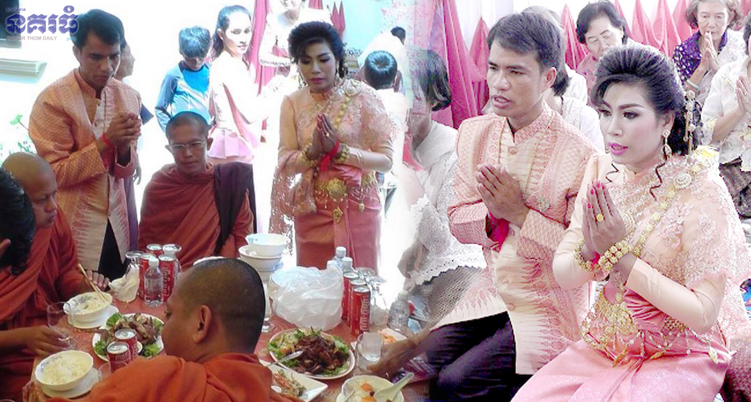 ខេត្តកំពង់ឆ្នាំង ៖ ជារឿងគួរឱ្យភ្ញាក់ផ្អើល មិនធ្លាប់កើតមាន ខណៈដែលគូស្នេហ៍ខាងកូនកំលោះជាអាចារ្យក្មេង រីឯកូនក្រមុំជាដូនជី បានដឹកដៃគ្នាចូលរោងការរៀបចំពិធីយ៉ាងអធិកអធម ព្រមទាំងបាននិមន្តព្រះសង្ឃចំនួនជាង១០០អង្គ ដើម្បីឆាន់ចង្ហាន់ថ្ងៃត្រង់ បង្កឱ្យមានការភ្ញាក់ផ្អើលឡើង កាលពីថ្ងៃទី២២ ខែតុលា ឆ្នាំ២០១៧ នៅចំណុចឃុំស្រែថ្មី ស្រុករលាប្អៀរ។