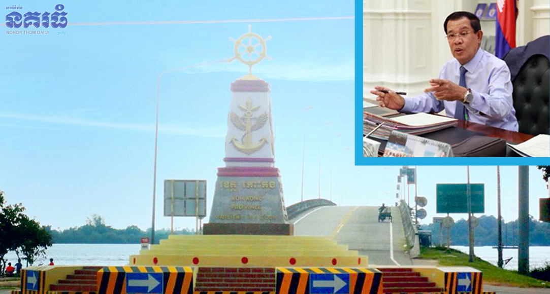 ភ្នំពេញ ៖ សម្តេចហ៊ុន សែន នាយករដ្ឋមន្ត្រីនៃព្រះរាជាណាចក្រកម្ពុជា បានប្រកាសថា ក្នុងនាមរាជរដ្ឋាភិបាល សម្តេចបានសម្រេចទិញយកស្ពានស្ពានកោះកុង ឆ្លងកាត់ដៃសមុទ្រខេត្តកោះកុង ទៅប្រទេសថៃ ដែលវិនិយោគដោយក្រុមហ៊ុន លី យ៉ុងផាត់ ដើម្បីឱ្យបងប្អូនប្រជាពលរដ្ឋធ្វើដំណើរឆ្លងកាត់ដោយពុំចាំបាច់បង់ថ្លៃ ចាប់ពីថ្ងៃទី០២ ខែវិច្ឆិកា ឆ្នាំ២០១៧ ដែលនេះជាកាដូថ្មីមួយទៀតរបស់សម្តេច ជូនដល់ប្រជាជនកម្ពុជា ដើម្បីអបអរព្រះរាជពិធីបុណ្យអុំទូក បណ្តែតប្រទីប និងសំពះព្រះខែ អកអំបុក។