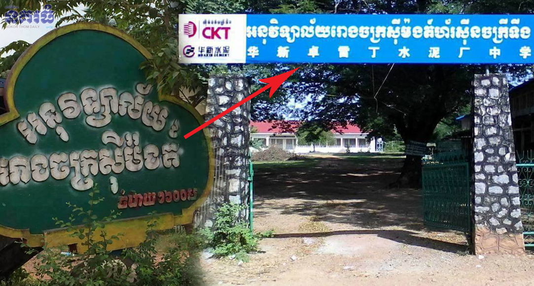 ម្ចាស់គណនីហ្វេសប៊ុកឈ្មោះ Ratha Phok បានសរសេរថា “សូមស្នើ និងអំពាវនាវឱ្យភាគីក្រុមហ៊ុន និងគណៈគ្រប់គ្រងសាលាអនុវិទ្យាល័យរោងចក្រស៊ីម៉ងត៍ ធ្វើការប្តូរយកឈ្មោះ ដីមវិញជាបន្ទាន់។ ព្រមទាំងមន្ទីរ ក្រសួង និងស្ថាប័នពាក់ព័ន្ធត្រួតពិនិត្យផងទាន។ រឿងរកជំនួយ និងការជួយ ខ្ញុំកាន់តែត្រេកអរ តែបើប្តូរឈ្មោះរបស់សាលាដែលមានឈ្មោះចិន ខ្ញុំមិនគាំទ្រឡើយ។ សូមថ្នាក់ដឹកនាំ មន្ទីរ និងក្រសួងពាក់ព័ន្ធពិនិត្យឡើងវិញ។ យើងត្រូវយល់ពីកាតព្វកិច្ចរបស់ក្រុមហ៊ុនវិនិយោគ គឺមានកាតព្វកិច្ចបង់ពន្ធជូនរដ្ឋរបស់ប្រទេសខ្ញុំ ហើយកាតព្វកិច្ចជួយស្តារបរិស្ថានធម្មជាតិ និងបរិស្ថានសង្គមសេដ្ឋកិច្ចទៅតាមតម្រូវការចាំបាច់ណាមួយ តែមិនត្រូវមានការប្តូរឈ្មោះសោះឡើយ តែអាចចារឈ្មោះអ្នកជំនួយនៅត្រង់កន្លែងណាមួយ សមរម្យបាន។ ហើយក្រសួងអប់រំក៏មិនអាចប្តូរបានដែរ តើនរណាជាអ្នកមានអាជ្ញាសឹកអាចប្តូរបាន? ថ្លើមពាស មេឃទេដឹង? បើតាមក្រសួងបរិស្ថានតម្រូវ បើក្រុមហ៊ុននោះ វិនិយោគនៅតំបន់ណាមួយ ក្រុមហ៊ុននោះត្រូវតែមានកញ្ចប់ថវិកា ដែលគេហៅថា មូលនិធិបរិស្ថាន (ទាំងបរិស្ថានធម្មជាតិ និងបរិស្ថានសង្គមសេដ្ឋកិច្ច) ដោយស្តារបរិស្ថានឡើងវិញ បើសិនមានផលប៉ះពាល់នៅតំបន់នោះ ហើយកញ្ចប់ថវិកានោះ គឺត្រូវបញ្ចូលទាំងការលើកតម្កើងវិស័យអប់រំ នៅតំបន់នោះ ប្រព័ន្ធផ្លូវ និងហេដ្ឋារចនាសម្ព័ន្ធនៅតំបន់នោះផងដែរ។ តែមិនត្រូវមានការប្តូរឈ្មោះដើមរបស់តំបន់នោះជាដាច់ខាត ព្រោះខុសច្បាប់វិនិយោគ និងច្បាប់បរិស្ថាន។ ក្នុងនាមពលរដ្ឋម្នាក់ ហើយក៏ជាអតីតសាលា ខ្ញុំស្នើសុំឱ្យមានការប្តូរចេញជាបន្ទាន់ ដោយយកឈ្មោះដើមវិញ។ រឿងជួយយើងអរគុណណាស់ ដោយចារនៅត្រង់កន្លែងណាសមរម្យមួយ។ បើមិនមានការប្តូរទេ ខ្ញុំសុំអនុញ្ញាតនឹងយករូបឈ្មោះដើម និងឈ្មោះថ្មីទៅផុស ឬផ្សព្វផ្សាយបន្តក្នុងបណ្តាញសង្គម ដើម្បីឱ្យមានការផ្លាស់ប្តូរ។ សូមលោកគ្រូអ្នកគ្រូពាក់ព័ន្ធ គិតគូរឡើងវិញ ក្នុងនាមលោកគ្រូអ្នកគ្រូជាថ្នាក់ដឹកនាំសាលារបស់ជាតិមួយរូប។ រឿងជំនួយយើងមិនហាមឃាត់ តែសូមរក្សាឈ្មោះដើម។ អរគុណ!…”។