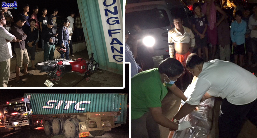 ភ្នំពេញ ៖ បុរសម្នាក់មិនដែលស្គាល់ស្ពានលីយ៉ុងផាត់ បានឲ្យមិត្តភក្កិដឹកទៅមើល ត្រូវរថយន្តកុងតឺន័រ ធ្លាក់ទូកុងតឺន័រសង្កត់ពីលើ បណ្តាលឲ្យស្លាប់ ហើយមិត្តភក្កិរងរបួសស្រាល ចំណែករថយន្តកុងតឺន័ររេចង្កូតឡើងលើសួនច្បារពុះចែកផ្លូវ ទៅបុករថយន្តកុងតឺន័រមួយគ្រឿងទៀតបើកបញ្រ្ចាសទិសគ្នា បង្កឲ្យកកស្ទះចរាចរណ៍រាប់ម៉ោង ហេតុការណ៍នេះបានកើតឡើងកាលពីម៉ោង៨និង២០នាទីយប់ ថ្ងៃទី២០ ខែវិច្ឆិកា ឆ្នាំ២០១៧ តាមបណ្តោយផ្លូវកប់ស្រូវ នៅចំណុចគល់ស្ពានលីយ៉ុងផាត់ ស្ថិតនៅក្នុងភូមិផ្សារលិច សង្កាត់ព្រែកព្នៅ ខណ្ឌព្រែកព្នៅ។