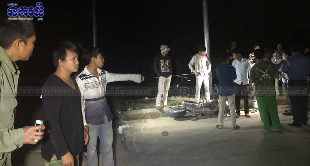 ភ្នំពេញ ៖ យុវជន២នាក់ បានជិះម៉ូតូចេញពីផ្ទះ បំណងស្កាត់មកជួបស្រីស្នេហ៍នៅភ្នំពេញ ស្រាប់តែអកុសល ជ្រុលចង្កូតទៅបុកនឹងរបាំងថ្ម ដែលគេទុករៀបសួនច្បារពុះចែកទ្រូងផ្លូវ បណ្តាលឱ្យយុវជនជាអ្នកបើកម៉ូតូដួលហោះផ្លោងបោកក្បាលទៅនឹងថ្នល់ បែកក្បាលស្លាប់ក្នុងថ្លុកឈាម ចំណែកអ្នកអង្គុយខាងក្រោយរងរបួសធ្ងន់។