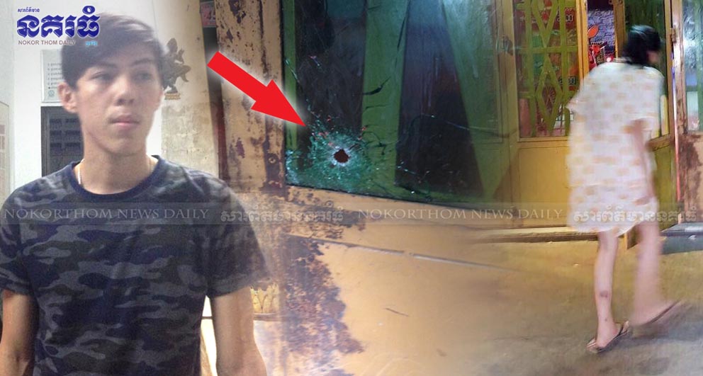 ភ្នំពេញ ៖ យុវជនជានិស្សិតម្នាក់កំពុងឈប់ម៉ូតូចាំសង្សារ ស្រាប់តែលេចមុខជនសង្ស័យ៣នាក់ជិះម៉ូតូមកសម្លឹងមុខ រួចក៏ជិះប្រដេញតាម និងដកកាំភ្លើងបាញ់គំរាមចំនួន២គ្រាប់ តែសំណាងល្អមិនបង្កឱ្យមានមនុស្សណាម្នាក់ទទួលរងរបួសនោះទេ និងត្រូវគេសង្ស័យថា ករណីនេះ គឺផ្តើមចេញពីរឿងគំនុំស្នេហាត្រីកោណ។