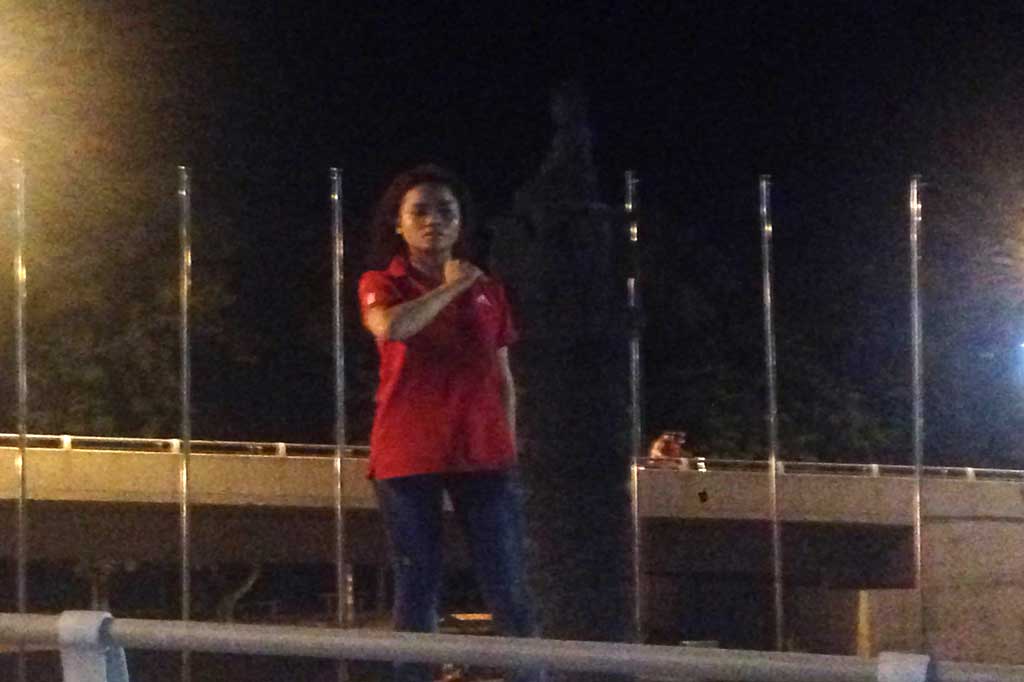 តាមប្រភពព័ត៌មានពីកន្លែងកើតហេតុបានឲ្យដឹងថា នៅមុនពេលកើតហេតុគេឃើញនារីខាលើ បានដើរតាមផ្លូវកម្ពុជាក្រោមក្នុងទិសដៅពីកើតទៅលិច ខណះពេលដើរមកដល់ក្រោមស្ពានបានសំដៅទៅកន្លែងគេលក់ប្រហិតនៅខាងក្រោមស្ពានហើយបានកញ្ឆក់យកកូនកាំបិតចិត្តបន្លែស្ទុះរត់ឡើងទៅឈីលើបង្កាន់ស្ពានមានកំពស់ពី៥ម៉ែត្រទៅ៦ម៉ែត្រដោយយកកូនកាំបិតចិត្តបន្លែភ្ជង់កខាងស្តាំរបស់ខ្លួនហើយនិយាយថា រូបគេលែងចង់រស់តទៅទៀតហើយ បង្កឲ្យមានការភ្ញាក់ផ្អើលដល់ប្រជាពលរដ្ឋមកលេងទីនោះនឹងអ្នកធ្វើដំណើរកាត់នោះចោមរួមមើលបានរាយការណ៍ទៅសមត្ថកិច្ចមូលដ្ឋានឲ្យចុះមកឃាត់នឹងជួយអន្តរាគមន៍ បន្ទាប់សមត្ថកិច្ចបានចុះមកដល់កន្លែងកើតហេតុធ្វើការលួងលោមឲ្យនារីចុះពីលើស្ពានរួចចាប់វាយខ្នោះកុំឲ្យនាងរើបំរះដើម្បីដឹកបញ្ជូនទៅសង្គមកិច្ចទាំងយប់តែម្តង ។