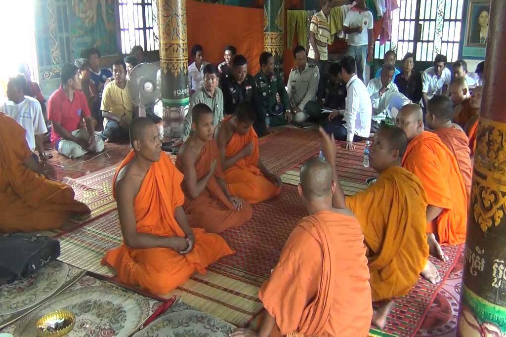 លុះមកដល់រសៀលម៉ោង២ ថ្ងៃទី៦សីហា ព្រះតេជគុណ សាន រស់ ព្រះអនុគណស្រុកបាន ដឹកនាំមន្ត្រីសង្ឃ និងធម្មការស្រុក ដោយមានទាំងអាជ្ញាធរនិងសម្ថកិច្ចផងនោះ ចុះទៅពិនិត្យនិងរៀបចំវត្តឡើងវិញ ប៉ុន្តែនៅពេលដឹងពត៌មានរឿងមានអ្នកគាស់ទ្វាព្រះវិហារចូល ប្រមូលយករបស់របរនោះមន្ត្រីសង្ឃស្រុកក៏បានសំរេចដកសង្ឃទាំង៣អង្គនៅក្នុងវត្ត អោយទៅគង់នៅវត្តផ្សេង១រយៈ រងចាំអោយទីអាវ៉ាស់វត្តបឹងផ្សោតនេះ មានភាពស្ងប់ស្ងាត់វិញសិន ទើបអោយអ្នកស្រុកនិមន្តព្រះសង្ឃមកគង់ក្នុងវត្តនេះវិញ ព្រមទាំងធ្វើពិធីជ្រើសរើសចៅអធិការ និងបោះឆ្នោតរើសគណៈកម្មការវត្តថ្មីតែម្តង។