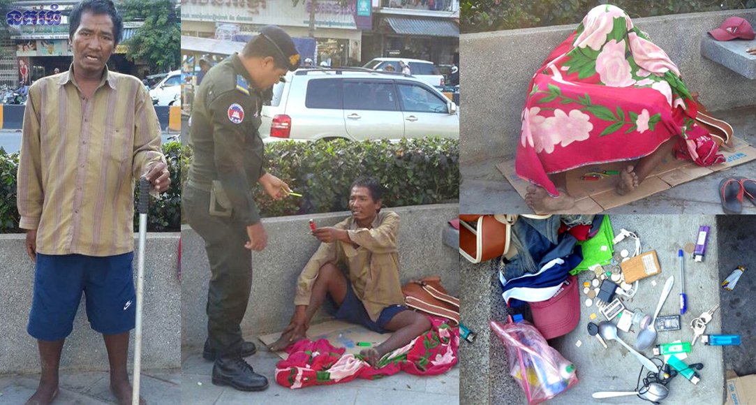 គួរឱ្យភ្ញាក់ផ្អើលណាស់ ទាំងពីរនាក់នោះគ្រាន់តែជាអ្នកសុំទាន តែហ៊ានអង្គុយជក់គ្រឿងញៀនកណ្តាលទីសាធារណៈយ៉ាងរំភើយ។ ឆ្លើយតបជាមួយសមត្ថកិច្ចអាវុធហត្ថរាជធានីភ្នំពេញ បុរសម្នាក់ដែលជាអ្នកជក់ថ្នាំ បានសារភាពថា រាល់ថ្ងៃរូបគេតែងដើរសុំទានបាន១ម៉ឺនទៅ២ម៉ឺនរៀល ក៏យកទៅទិញគ្រឿងញៀនជក់។ ក្រោយពេលនឹកហួសចិត្ត និងពិនិត្យឃើញស្មារតីកាយសម្បាគាត់ទន់ខ្សោយ សមត្ថកិច្ចអាវុធហត្ថ បានទំនាក់ទំនងជាមួយមន្ទីរសង្គមកិច្ច រាជធានីភ្នំពេញ ដើម្បីយកពួកគាត់ទៅអប់រំផ្តាច់សារធាតុញៀន និងបណ្តុះបណ្តាលជំនាញវិជ្ជាជីវៈផ្សេងៗ ដល់ពួកគាត់សម្រាប់យកទៅប្រកបរបរចិញ្ចឹមជីវិត បន្ទាប់ពីពួកគាត់បានបន្សាបសារធាតុញៀនអស់។