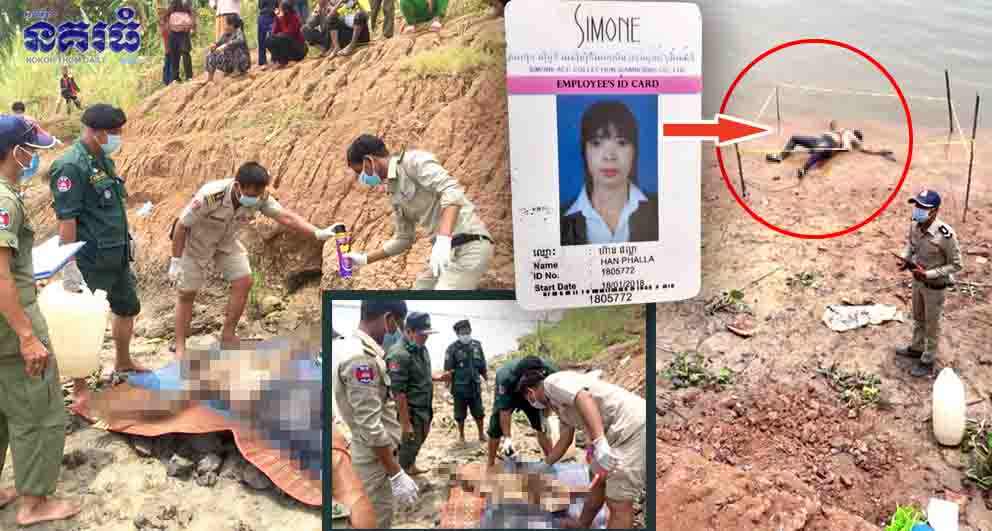 សាកសពស្ត្រីរងគ្រោះ ដែលអណ្តែតទឹកហើមស្អុយរលួយ មានឈ្មោះហ៊ាន ផល្លា អាយុ៣៣ឆ្នាំ ជាកម្មការិនីរោងចក្រស៊ីម៉ូនី អេស៊ីសី ខឺលេកសិន (ខេមបូឌា) ខូលអិលធីឌី SIMONE ACC COLLECTION (CAMBODIA) CO,LTD មានលំនៅផ្ទះលេខ១២៥ ផ្លូវលំ សង្កាត់បឹងសាឡាង ខណ្ឌទួលគោក។