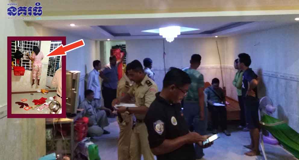 តាមប្រភពពីសមត្ថកិច្ច បានឱ្យដឹងថា នៅមុនកើតហេតុ មានបងប្អូនខាងស្ត្រីរងគ្រោះ បានទូរស័ព្ទទៅរកស្ត្រីរងគ្រោះជាច្រើនដង ប៉ុន្តែគ្មានអ្នកលើក លុះក្រោយមកក៏មានអ្នកចុចទទួល តែបែរជាឮសំឡងកូនក្មេង (កូនស្រីរបស់ស្ត្រីរងគ្រោះ) និយាយ តែនិយាយមិនច្បាស់សោះ ទើបមានការសង្ស័យ ក៏ទូរស័ព្ទឱ្យមិត្តភក្តិរបស់ស្ត្រីរងគ្រោះម្នាក់ដែលនៅភ្នំពេញ ឱ្យជួយទូរសព្ទ័ទៅប្រាប់បុរសជាប្តីនៅកន្លែងធ្វើការឱ្យទៅជួយ មើលប្រពន្ធនៅផ្ទះផង។ ស្រាប់តែពេលបុរសជាប្តីបានមកដល់ផ្ទះ ក៏ប្រទះឃើញប្រពន្ធបានចងកសម្លាប់ខ្លួនជាប់នឹងចម្រឹងដែកបង្អួចផ្ទះបាយស្លាប់បាត់ទៅហើយ។