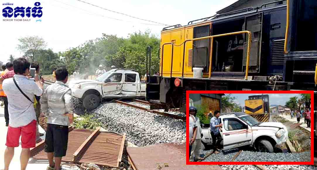 ខេត្តបន្ទាយមានជ័យ ៖ បុរសម្នាក់បានបើករថយន្តឆ្លងកាត់ផ្លូវដែកដោយខ្វះការប្រុងប្រយ័ត្ន ស្របពេលដែលមានរថភ្លើងបើកឆ្លងកាត់ ក៏ជ្រុលទៅបុកអូសរថយន្តចម្ងាយប្រមាណ៣០ម៉ែត្រ បណ្តាលឱ្យអ្នកបើកបរថយន្តទទួលរងរបួសធ្ងន់ កាលពីវេលាម៉ោងជិត១១ព្រឹក ថ្ងៃទី២១ ខែមេសា ឆ្នាំ២០១៨ នៅចំណុចផ្លូវរថភ្លើងមួយកន្លែង ស្ថិតក្នុងភូមិអូរជ្រៅ សង្កាត់ប៉ោយប៉ែត ក្រុងប៉ោយប៉ែត ។