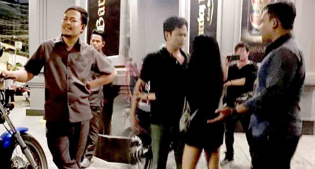 បន្ទាប់ពីស្រែកចោទដាក់គ្នាទៅវិញទៅមកហើយ ស្រាប់តែបុរសដែលនាងអះអាងថា ជាប្តីត្រូវបុគ្គលិកគ្រាហ៍ចុះពីបន្ទប់ខារ៉ាអូខេចេញមកក្រៅ ដើម្បីឱ្យជួយនិយាយលួងលោមស្ត្រីជាប្រពន្ធ ប៉ុន្តែបុរសរូបនោះបែរជាបោះសម្តីថា រូបនាងមិនមែនជាប្រពន្ធគាត់នោះទេ ធ្វើឱ្យស្ត្រីរូបនោះ រឹតតែស្រែកយំខ្លាំងឡើង និងថែមទាំងបានដេញឱបថើបបុរសដែលនាងអះអាងថា ជាប្តីនោះពេញផ្លូវ។