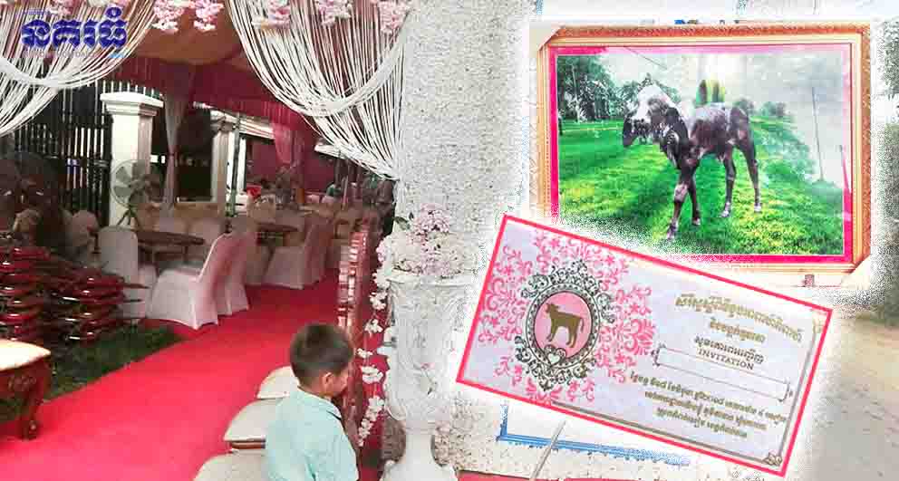 តាមរយៈរូបថតទាំង៣សន្លឹក ដែលម្ចាស់គណនីហ្វេសប៊ុកខាងលើបានបង្ហោះ គេឃើញ រូបថត១សន្លឹក បង្ហាញពីរូបកូនគោពណ៌ខ្មៅ ដែល ត្រូវបានគេដាក់តាំងនៅខាងមុខរោងប្រារឰពិធី ប្រៀបបាននឹងការតាំងរូបថតកូនកំលោះកូនក្រមុំនៅខាងមុខរោងការដូចច្នោះដែរ។