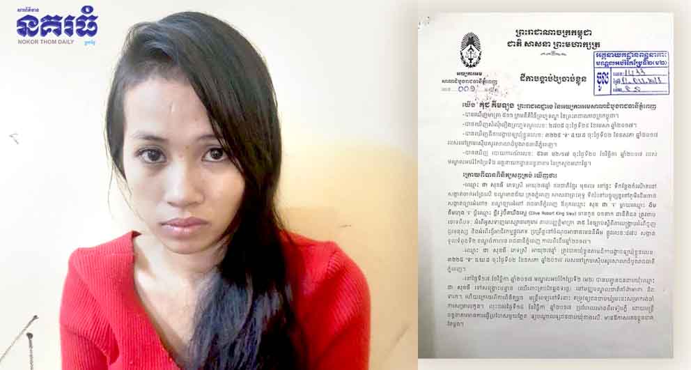 លោកវរសេនីយ៍ទោ ម៉ៅ សឿត អធិការរងនគរបាលខណ្ឌច្បារអំពៅ បានបញ្ជាក់ឱ្យដឹងថា ការចាប់ខ្លួនស្ត្រីជាប់ចោទខាងលើនេះ អនុវត្តតាមដីកាបង្គាប់ឱ្យចាប់ខ្លួនលេខ០០១ អ.យ.ក ចុះថ្ងៃទី១០ ខែមេសា ឆ្នាំ២០១៨ ចេញដោយលោកគុជ គីមឡុង ព្រះរាជអាជ្ញារងនៃអយ្យការ អមសាលាដំបូងរាជធានីភ្នំពេញ ពីបទអំពើអូសទាញពេស្យាចារកុមារ ប្រព្រឹត្តនៅចំណុចអាផាតមេនឌីអឹម ផ្លូវ៤៧០ សង្កាត់ទួលទំពូង២ ខណ្ឌចំការមន កាលពីដើមឆ្នាំ២០១៧។