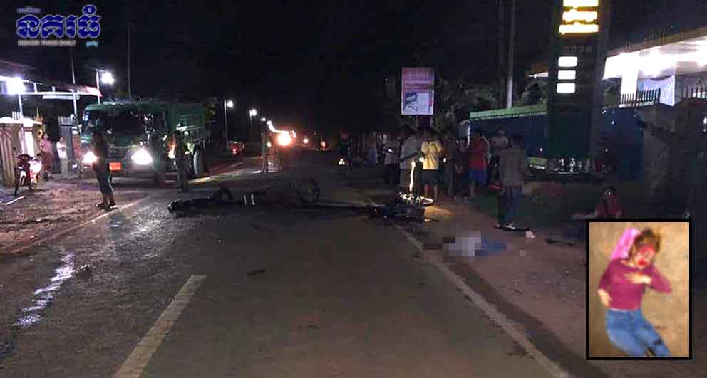 ខេត្តកណ្តាល ៖ ប្តីប្រពន្ធ២នាក់ ទើបនឹងចេញពីធ្វើការ ជិះម៉ូតូដឹកគ្នាបំណងត្រឡប់ទៅផ្ទះវិញ ស្រាប់តែអកុសល ត្រូវម៉ូតូ១គ្រឿងទៀត បើកដោយបុរសជនជាតិវៀតណាមម្នាក់ ជ្រុលមកបុកចំពីមុខយ៉ាងពេញទំហឹង បណ្តាលឱ្យបុរសជនជាតិវៀតណាមរូបនោះទទួលរងរបួសធ្ងន់ រីឯបុរសជាប្តីស្លាប់នៅនឹងកន្លែងយ៉ាងអាណោចអាធ័ម ចំណែកស្ត្រីជាប្រពន្ធដែលរួមដំណើរជាមួយបានទទួលរងរបួសធ្ងន់ផងដែរ។