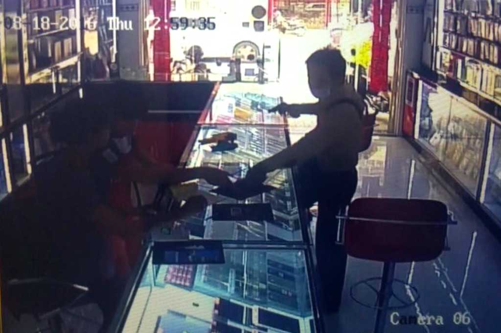 បើតាមសំដីរបស់ម្ចាស់ហាងបានប្រាប់ឲ្យដឹងថា នៅមុនពេលកើតហេតុ គឺមានបុរសម្នាក់ជិះម៉ូតូមួយគ្រឿងម៉ាកwave ពណ័ខ្មៅ ពាក់ស្លាកលេខ ភ្នំពេញ1G.5094 ចូលមកហាងហើយអង្គុយលើកៅអីសួររកទិញទូរសព្ទ័ដៃ យកលក់បន្ត ពេលនោះ ចោរក៍សួរថា មានទូរសព្ទ័មា”កiPhone6s plus ៣ដើម មកនិងSAMSUNG S6edge២ ដើម iphone5 ២ ដើម ដោយនិយាយត្រូវហើយ គាត់ច្រកក្នុងថង់ទុកនៅលើទូរង់ចាំគិតលុយ ស្រាប់តែពេលនោះចោរក៍លូកដៃចូលក្នុងកាបូបដកកាំភ្លើងខ្លីចេញមកភ្ជង់អ្នកលក់ និងទាញទូរសព្ទ័ដាក់ក្នងកាបូបរត់ចេញមកក្រៅឡើងម៉ូតូ ប្រុងគេចខ្លួន ស្រាប់តែកម្លាំងនគរបាលល្បាតនៅក្បែរនោះ លឺសំឡេងជនរងគ្រោះស្រែក ក៏ចុះទៅជួយអន្តរាគមន៍ ធ្វើឲ្យជនសង្ស័យភ័យរត់ចោលម៉ូតូ ហើយកាន់កំាភ្លើងជាប់ដៃបម្រុងបាញ់សមត្ថកិច្ចទៀត ហើយបានរត់ចូលទៅក្នុងផ្សារនាគមាសបាត់ស្រមោលទៅ ។