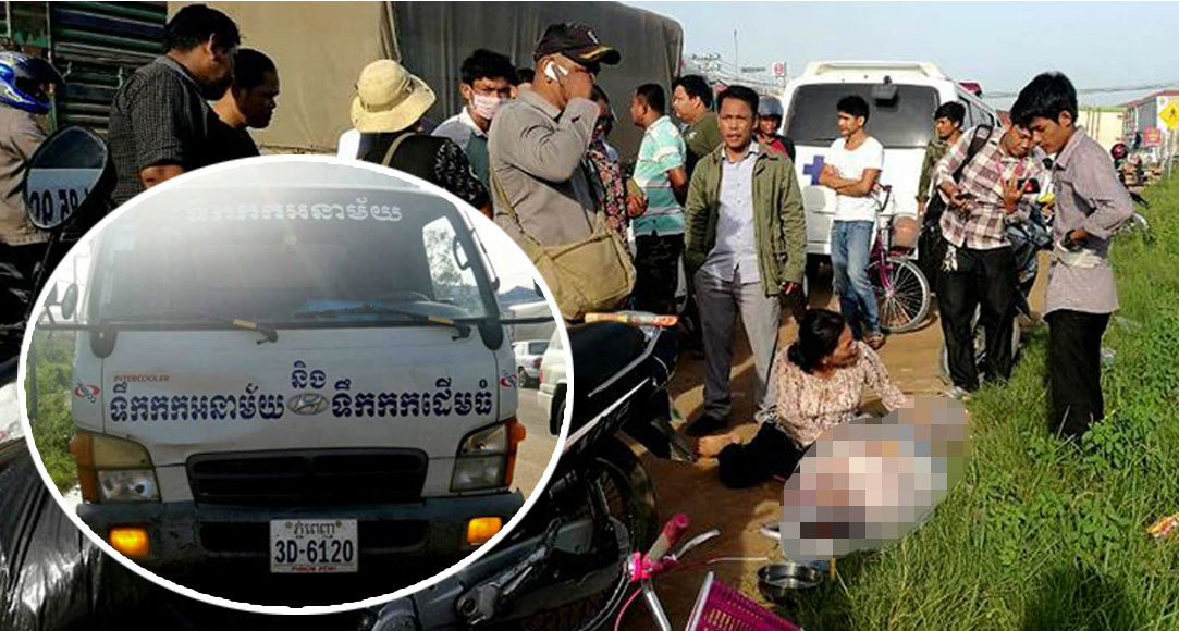 ភ្នំពេញ ៖ បុរសម្នាក់ បានបើកម៉ូតូដឹកប្រពន្ធ និងកូនប្រុសចេញពីផ្ទះជួល សំដៅជូនប្រពន្ធទៅធ្វើការ ស្រាប់តែអកុសល បើកដល់ពាក់កណ្តាលផ្លូវ ក៏ត្រូវរថយន្តដឹកទឹកកកមួយគ្រឿង បើកយ៉ាងលឿន ព្យាយាមវ៉ាជែងរថយន្តមួយគ្រឿងផ្សេងទៀត ពីខាងស្តាំដៃ ធ្វើឱ្យជ្រុលទៅបុកម៉ូតូជនរងគ្រោះយ៉ាងពេញទំហឹង បណ្តាលឱ្យស្ត្រីជាប្រពន្ធធ្លាក់ពីលើម៉ូតូស្លាប់យ៉ាងអាណោចអាធ័ម ចំណែកបុរសជាប្តី រួមនិងកូនតូច ទទួលរងរបួសធ្ងន់។