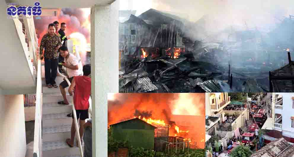 ភ្នំពេញ ៖ អគ្គិភ័យបានលេបត្របាក់ទាំងស្រុងផ្ទះប្រជាពលរដ្ឋ ២២ខ្នង ស្មើនឹង៣១គ្រួសារ កាលពីវេលាម៉ោង៦ព្រឹក ថ្ងៃទី២៤ ខែមិថុនា ឆ្នាំ២០១៨ នៅភូមិក្បាលទំនប់ទី៣ សង្កាត់បឹងទំពុនទី២ ខណ្ឌមានជ័យ។ មូលហេតុ នៃអគ្គិភ័យនេះ ពុំទាន់ដឹងច្បាស់លាស់នៅឡើយ ទេ តែអាចបណ្តាលមកពីឆ្លងចរន្តអគ្គិសនី។