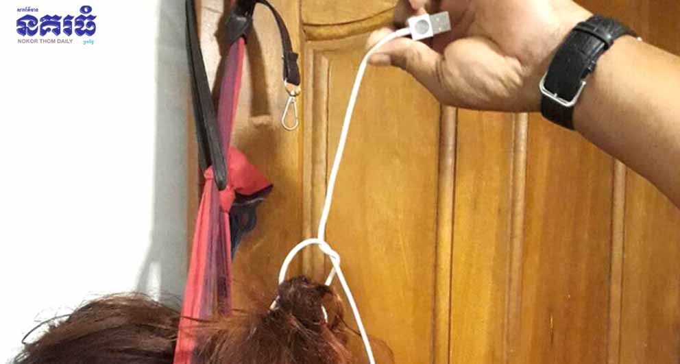 សមត្ថកិច្ចមូលដ្ឋានបានបញ្ជាក់ថា ក្រោយពីទទួលបានសេចក្តីរាយការណ៍ខាងលើភ្លាម សមត្ថកិច្ចជំនាញបានចុះពិនិត្យដល់ទីតាំងកើតហេតុ និងបានប្រទះឃើញថា ស្ត្រីរងគ្រោះ បានចងកសម្លាប់ខ្លួន នៅជាប់នឹងទ្វាបន្ទប់ទឹក ដែលមានកម្ពស់១,៩០ម៉ែត្រ ដោយប្រើកន្សែងពណ៌ក្រហម និងខ្សែកាបូប ចំណែកសក់របស់ស្ត្រីរងគ្រោះ ចងដោយខ្សែឆ្នាំងសាកទូរស័ព្ទទៀតផង។