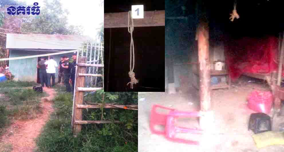 ស្ត្រីគំនិតខ្លីដែលតូចចិត្តសុំលុយប្តីលេងឡូតូបន្តអត់បាន បែរជាចងកធ្វើអត្តឃាត មានឈ្មោះកាក់ គឹមស្រន់ អាយុ២០ឆ្នាំ មានលំនៅក្នុង ភូមិឃុំកើតហេតុខាងលើ។