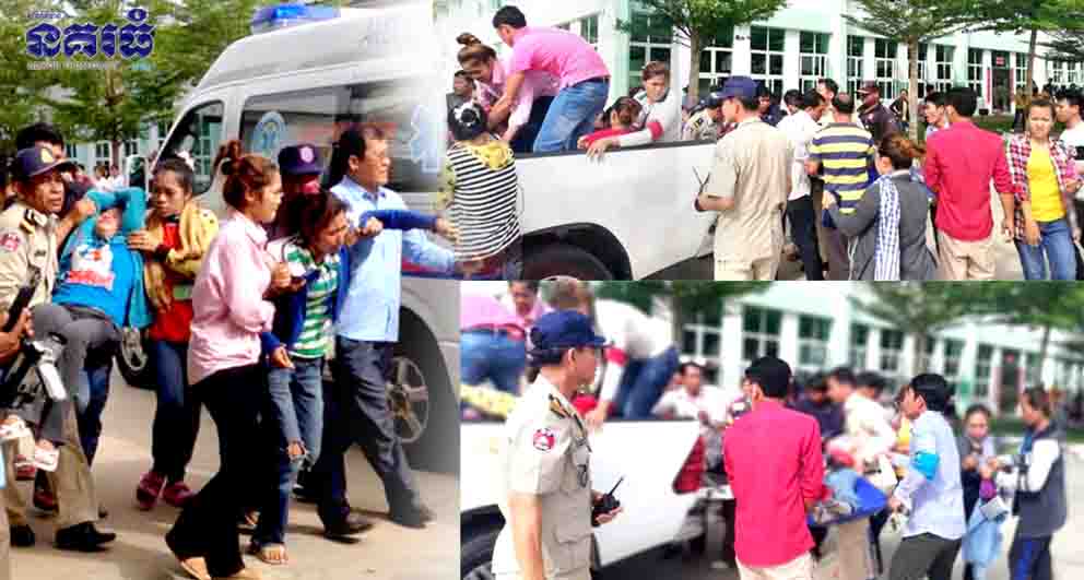 ខេត្តតាកែវ ៖ កម្មការិនីរោងចក្រ ខាងផ្នែកវ៉ៃឡេវម្នាក់ កំពុងបំពេញការងារសុខៗ ស្រាប់តែជួបគ្រោះថ្នាក់ ត្រូវម៉ាស៊ីនវ៉ៃឡេវ វ៉ៃចំដៃ បណ្តាលឱ្យបែកម្រាមដៃ ធ្វើឱ្យឈឺចុកចាប់ស្រែកផ្អើលពេញរោងចក្រ ជាហេតុធ្វើឱ្យក្រុមកម្មការិនីដែលកំពុងធ្វើការក្បែរគ្នានោះភ័យស្លន់ស្លោ ដួល សន្លប់ជាបន្តបន្ទាប់រហូតដល់ទៅ៥០នាក់។