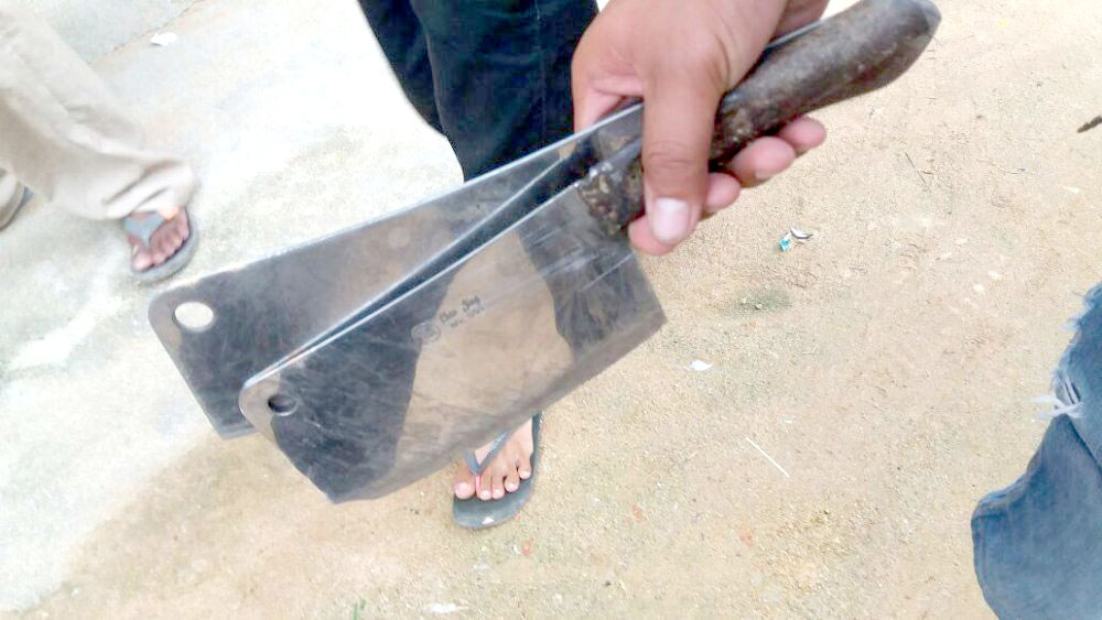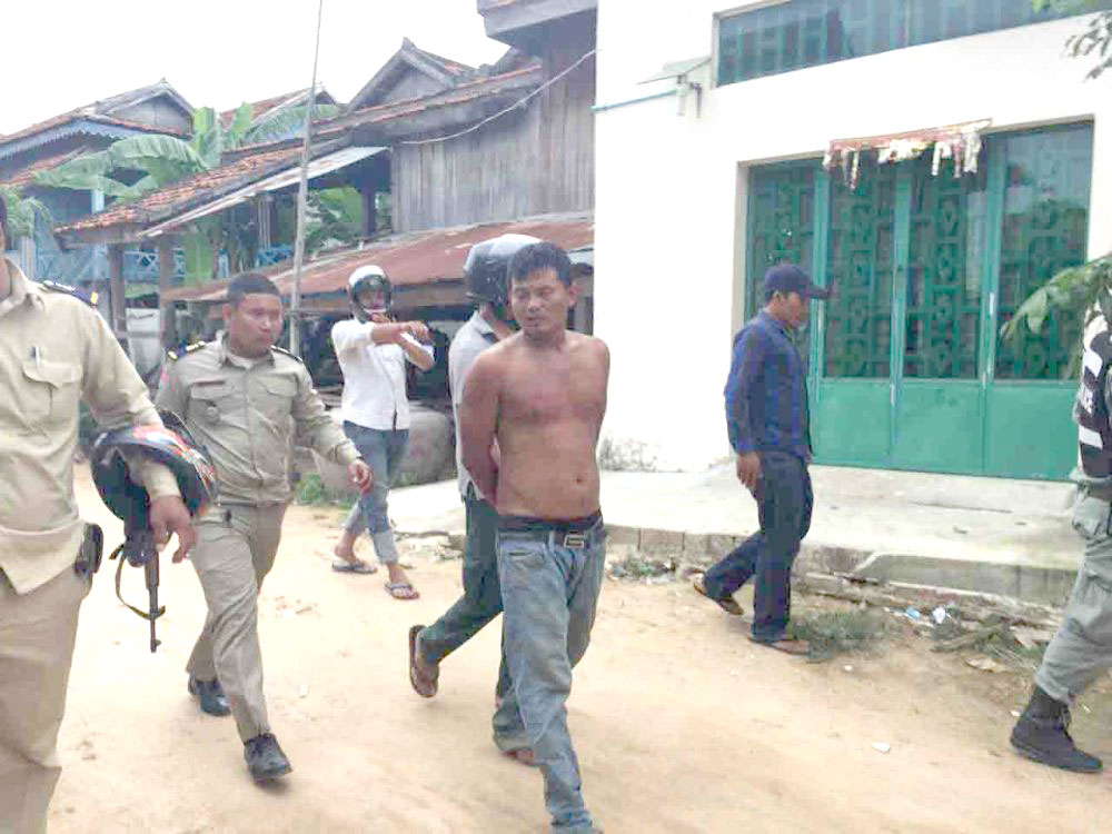 ប្រភពខាងលើ បានបញ្ជាក់ថា ដោយសារតែអត់ទ្រាំនឹងទង្វើឃោរឃៅរបស់ជនកំណាចរូបនេះលែងបាន ទើបប្រជាពលរដ្ឋបានរាយការណ៍សុំអន្តរាគមន៍ពីសមត្ថកិច្ចត្ចែម្តង។ លុះសមត្ថកិច្ចចុះមកដល់ ក៏មិនទាន់អាចចូលឃាត់ខ្លួនជនបង្កបានភ្លាមៗដែរ ដោយសារតែជនបង្កកាន់កាំបិតប៉័ងតោក្នុងដៃទាំងសងខាងជាប់ មិនព្រមទម្លាក់ចុះសោះ ព្រមទាំងស្រែកគំរាមកាប់អ្នកណាដែលចង់ចូលទៅក្បែររូបគេទៀតផង។