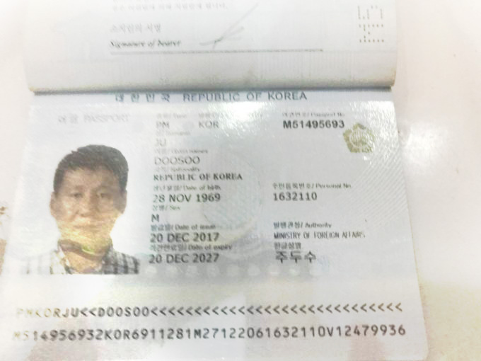 បុរសគំនិតខ្លីដែលចងកសម្លាប់ខ្លួន មានឈ្មោះ JU DOOSOO អាយុ៤៩ឆ្នាំ ជាជនជាតិកូរ៉េ កាន់លិខិតឆ្លងដែនលេខ M៥១៤៩៥៦៩៣ ស្នាក់នៅផ្ទះជួលកើតហេតុខាងលើ។