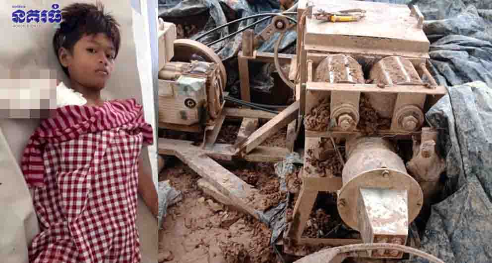 ខេត្តត្បូងឃ្មុំ ៖ ក្មេងប្រុសម្នាក់ ព្រោះតែជីវភាពគ្រួសារទីទ័លក្រលំបាកខ្លាំងពេក ចង់ជួយសម្រាលបន្ទុកគ្រួសារ ក៏ចូលទៅធ្វើជាកម្មករនៅក្នុងឡឥដ្ឋជាមួយឪពុកម្តាយដែរ ទាំងដែលខ្លួនមិនទាន់គ្រប់អាយុនៅឡើយ ស្រាប់តែអកុសល ខណៈដែលកំពុងរុញដីចូលក្នុងម៉ាស៊ីនកិនដីឥដ្ឋ ក៏ស្រាប់តែជ្រុលដៃ ត្រូវម៉ាស៊ីនកិនដាច់ត្រឹមកំភួនដៃ បណ្តាលឱ្យរងរបួសធ្ងន់។