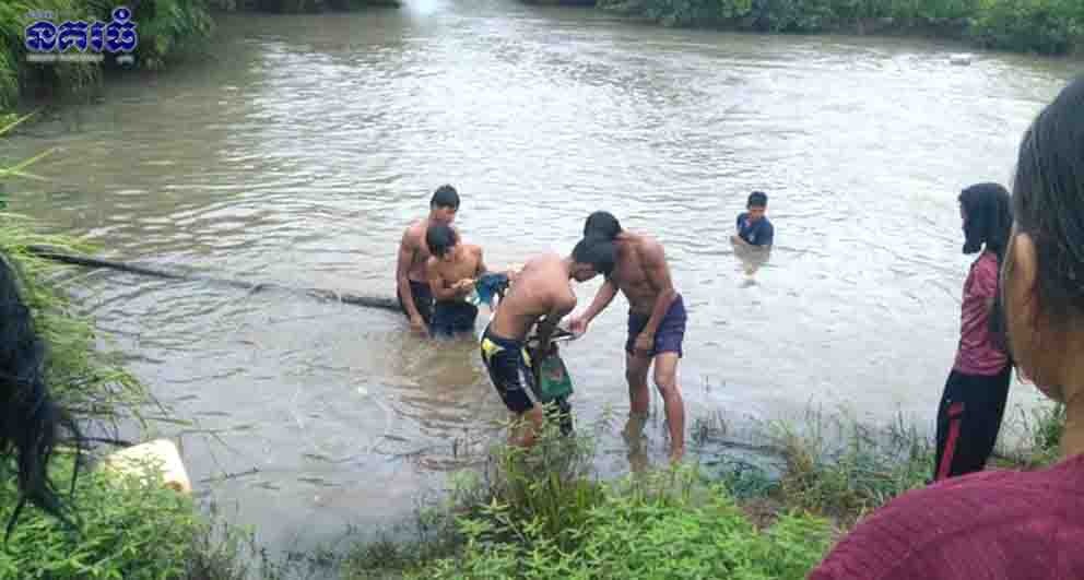 ខេត្តរតនគិរី ៖ ប្តីប្រពន្ធ២នាក់ បាននាំគ្នាបណ្តើរម៉ូតូឆ្លងទឹកអូរជម្រៅត្រឹមចង្កេះ ដោយប្តីជាអ្នកបណ្តើរ ចំណែកប្រពន្ធជួយរុញពីក្រោយ លុះពេលឆ្លងទឹកហូរខ្លាំង ប្រពន្ធទប់ជំហរមិនជាប់ ក៏រអិលជើងដួលចូលទឹក ឃើញបែបនេះ ប្តីក៏ស្ទុះទៅជួយតោងដៃប្រពន្ធជាប់ តែអកុសល ដោយសារ បុរសជាប្តីខ្សោះកម្លាំង ក៏បណ្តាលឱ្យទឹកហូរគួចលិចបាត់ ចំណែកប្រពន្ធសំណាងល្អបានស្រវាតោងគុម្ពឬស្សី រួចរស់ជីវិត។