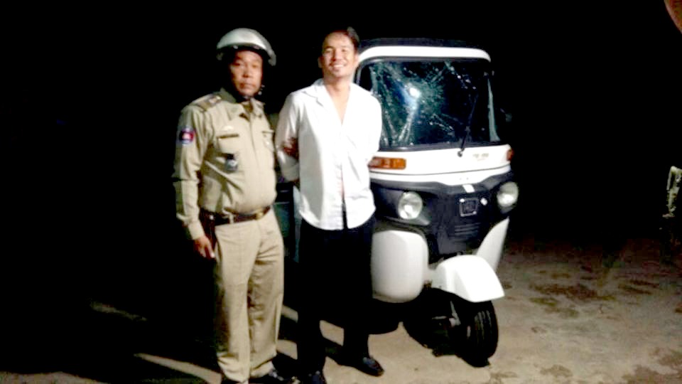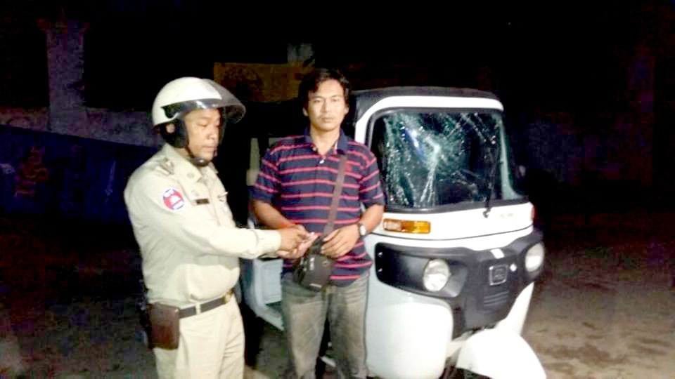 ភ្នំពេញ ៖ បុរសជាសន្តិសុខក្លឹបរាត្រីម្នាក់ ក្រោយពីផឹកស្រាស្រវឹងធ្លាក់ភ្នែកដើរទ្រេតទ្រោត និងស្រែកឡូឡាពេញផ្លូវ លុះឃើញម៉ូតូកង់បី១គ្រឿង បើកមកក្បែរ ក៏ស្ទុះទៅវាយបែកកញ្ចក់ ផ្អើលដល់សមត្ថកិច្ចចុះអន្តរាគមន៍ ក៏ត្រូវសន្តិសុខស្រវឹងរូបនោះ ចោទថា មកពីម៉ូតូកង់បី បម្រុងបើកបំបុករូបគេ ទើបគេវាយដើម្បីការពារខ្លួន ធ្វើឱ្យអ្នកចោមរោមមើល បានត្រឹមគ្រវីក្បាលហួសចិត្ត។