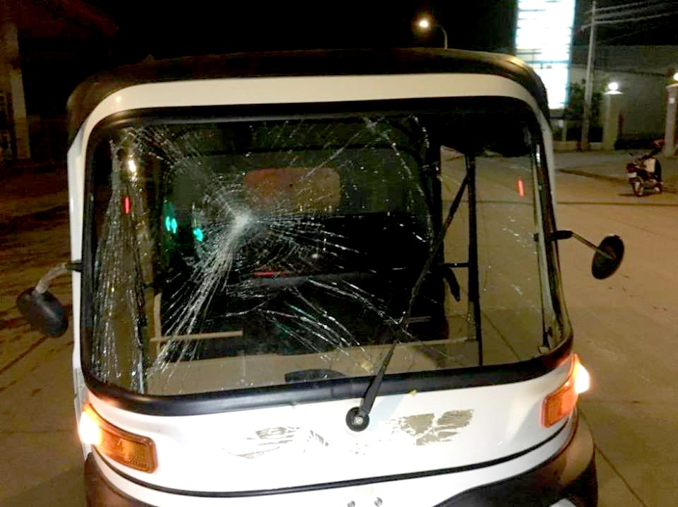 ប្រភពដដែលបន្តថា ឃើញសភាពបែបនេះ ជនរងគ្រោះក៏បានឈប់ម៉ូតូកង់បី ចំងាយប្រមាណ១០ម៉ែត្រពីជនបង្ក ស្រាប់តែភ្លាមនោះ ជនបង្កក៏រត់សំដៅទៅវាយកញ្ចក់ម៉ូតូកង់បីរបស់ជនរងគ្រោះមួយដៃបណ្តាលឱ្យបែកស្រាំ ហើយក៏កើតជាឈ្លោះប្រកែកគ្នាយ៉ាងតឹងសរសៃក និងត្រូវបានប្រជាពលរដ្ឋដែលនៅក្បែរនោះជួយឃាត់ខ្លាចកើតមានហិង្សា ព្រមទាំងរាយការណ៍ជូនសមត្ថកិច្ចមូលដ្ឋានឱ្យជួយមកអន្តរាគមន៍។