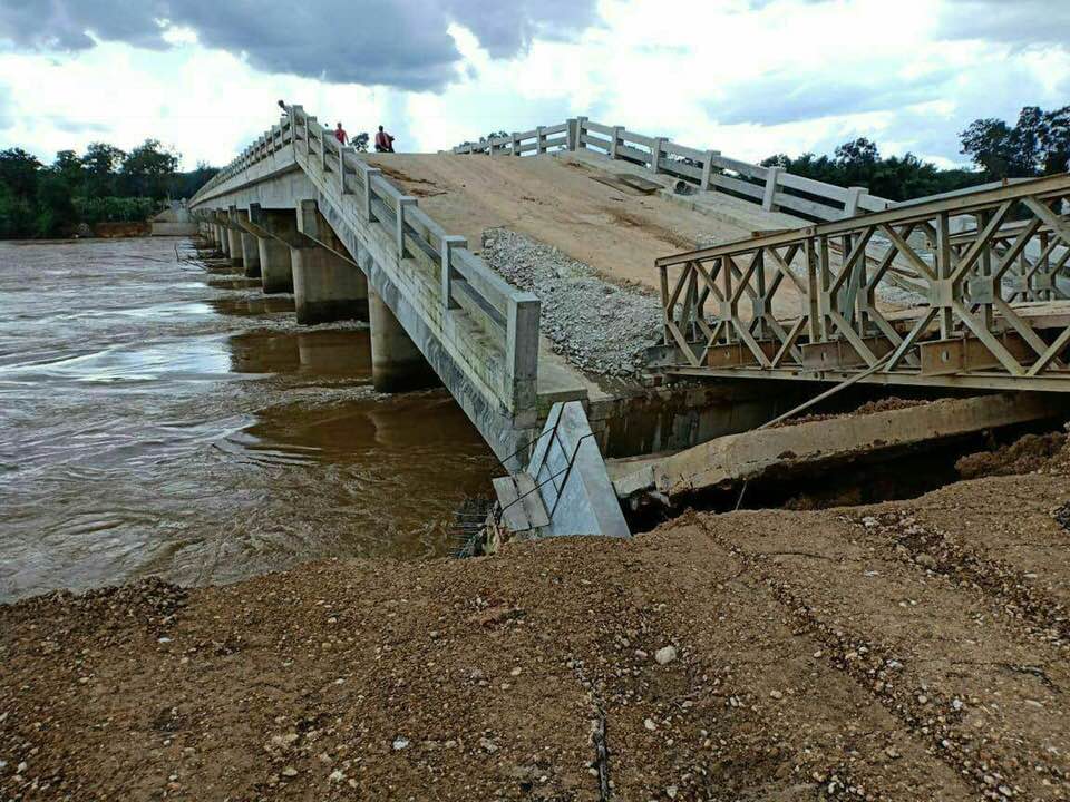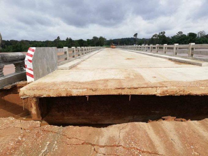 ស្ពានអូរគួក ក្បែរព្រំដែនឡាវ ត្រូវទឹកជំនន់វាយប្រហាររហូតដល់បាក់ស្រុក