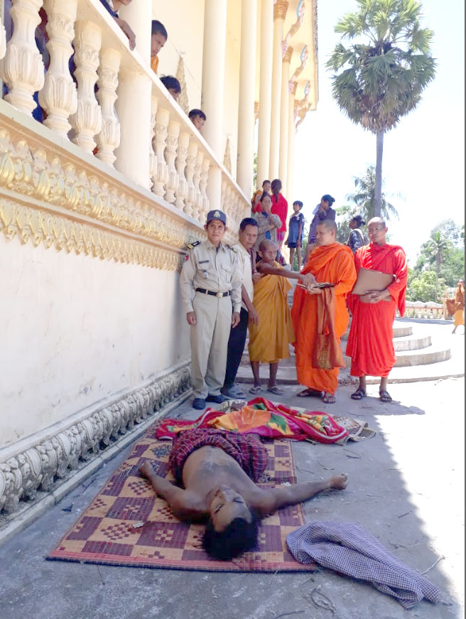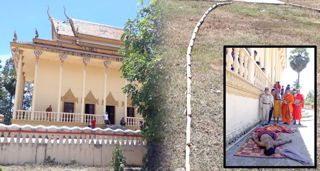 តាមប្រភពពីកន្លែងកើតហេតុ បានឱ្យដឹងថា នៅមុនពេលកើតហេតុ គេឃើញជនរងគ្រោះខាងលើ បានលីបង្អោងឫស្សីមួយដើម ចូលក្នុងវត្ត ប៉ុន្តែមិនមានអ្នកណាម្នាក់ចាប់អារម្មណ៍ ឬដឹងថា ជនរងគ្រោះយកបង្អោងឬស្សីចូលវត្តធ្វើអ្វីនោះទេ។ ស្រាប់តែមួយសន្ទុះក្រោយមក ក៏លាន់ឮសំឡេងធ្លាក់ដូចដូងទុំជ្រុះ ទើបធ្វើឱ្យកើតមានការភ្ញាក់ផ្អើលដល់តាចារ្យ និងព្រះសង្ឃគង់នៅក្នុងវត្ត ក៏ដូចជាប្រជាពលរដ្ឋដើរកមើល ស្រាប់តែប្រទះឃើញជនរងគ្រោះដេកស្លាប់នៅលើខឿនព្រះវិហារបាត់ទៅហើយ ទើបប្រញាប់រាយការណ៍ប្រាប់សមត្ថកិច្ចឱ្យចុះមកជួយអន្តរាគមន៍។