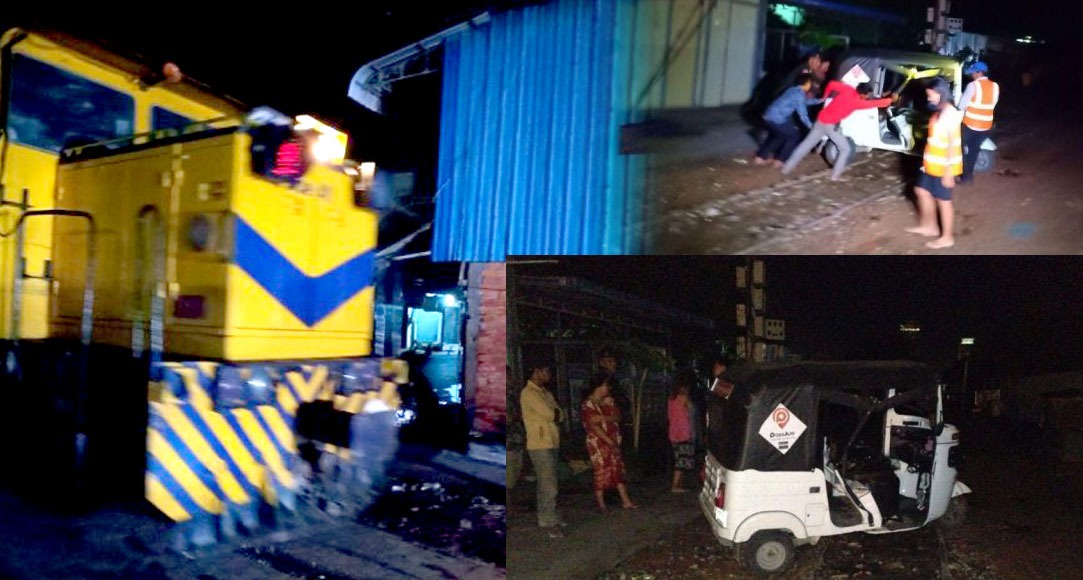 តាមប្រភពព័ត៌មានពីកន្លែងកើតហេតុ បានឱ្យដឹងថា នៅមុនពេលកើតហេតុ គេឃើញបុរសម្នាក់បើកបរម៉ូតូកង់បី១គ្រឿង ម៉ាកបាចា ពណ៌ស ពាក់ស្លាកលេខស្វាយរៀង 1M-4107 ដឹកបុរសជាភ្ញៀវចំនួន៤នាក់ទៀត ធ្វើដំណើរតាមបណ្តោយផ្លូវ១៣២ ក្នុងទិសដៅពីជើងទៅត្បូង។ លុះមកដល់ចំណុចកើតហេតុ ក៏បានបើកឆ្លងកាត់ផ្លូវរថភ្លើង ខណៈពេលនោះស្រាប់តែមានរថភ្លើ ដឹកអ្នកដំណើររបស់ស្ថានីយ៍រថភ្លើងភ្នំពេញ មួយខ្សែ បើកចេញពីអាកាសយន្តដ្ឋានអន្តរជាតិពោធិ៍ចិនតុង ឆ្ពោះចូលទៅស្ថានីយ៍រថភ្លើងភ្នំពេញ វិញ ក្នុងទិសដៅពីលិចទៅកើត ក៏ជ្រុលទៅបុក ម៉ូតូកង់បីខាងលើចំពាក់កណ្តាលយ៉ាងពេញទំហឹង បណ្តាលឱ្យម៉ូតូកង់បីកៀបជាប់រថភ្លើងអូសជិត ២០ម៉ែត្រ រងការខូចខាតយ៉ាងដំណំ និងបណ្តាលឱ្យ បុរសជាភ្ញៀវម្នាក់ រងរបួសបាក់ជើងខាងស្តាំ ត្រូវបានមិត្តភក្តិដឹកយកទៅសង្គ្រោះនៅឯមន្ទីរ- ពេទ្យភ្លាមៗ។