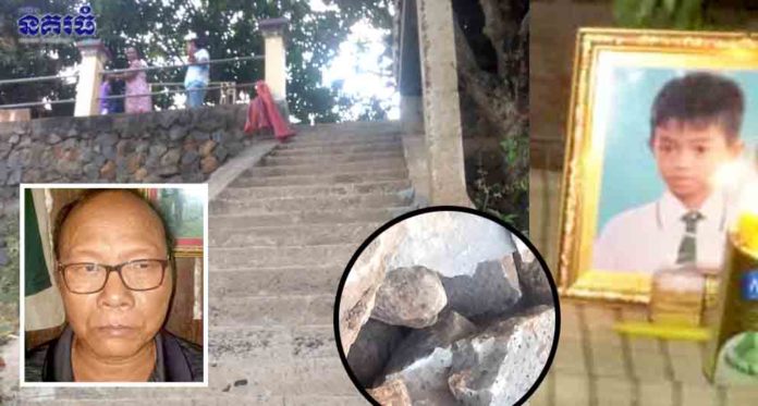 សមត្ថកិច្ចបានឱ្យដឹងថា ក្មេងប្រុសរងគ្រោះដែលត្រូវបុរសចំណាស់ម្នាក់បោះដុំថ្មចំក្បាល បណ្តាលឱ្យប្រកាច់ស្លាប់យ៉ាងអាណោចអាធ័ម មានឈ្មោះសាយ បញ្ញា អាយុ៩ឆ្នាំ រស់ក្នុងបន្ទុកឪពុកម្តាយ និងមានលំនៅក្នុងភូមិកំពង់ថ្ម ឃុំកំពង់ថ្ម ស្រុកសន្ទុក។ ចំណែកជនសង្ស័យមានឈ្មោះញឹក វង់ អាយុ៥៨ឆ្នាំ រស់នៅភូមិឃុំកើតហេតុខាងលើជាមួយគ្នា។