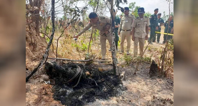 ខេត្តបន្ទាយមានជ័យ ៖ សាកសពបុរសមិនស្គាល់អត្តសញ្ញាណម្នាក់ ត្រូវបានគេប្រទះឃើញឆេះខ្លោចជាមួយនឹងកង់ឡាន ក្បែរដំបូកក្នុងព្រៃមួយកន្លែង បង្កឱ្យមានការភ្ញាក់ផ្អើលឡើង កាលពីវេលាម៉ោង៧ព្រឹក ថ្ងៃទី២៦ ខែកុម្ភៈ ឆ្នាំ ២០១៩ នៅចំណុចភូមិថ្មរមៀលខាងកើត ឃុំបន្ទាយឆ្មារ ស្រុកថ្មពួក។