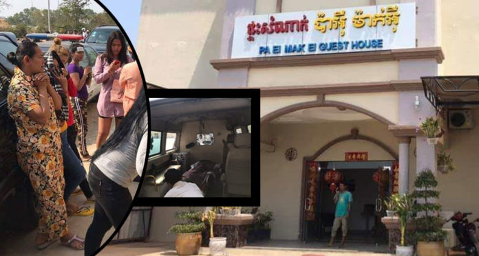 ខេត្តតាកែវ ៖ នៅវេលា១២ថ្ងៃត្រង់ ថ្ងៃទី០៤ ខែមីនា ឆ្នាំ២០១៩នេះ មានករណីភ្ញាក់ផ្អើលមួយបានកើតឡើង ដោយសារតែនារីបម្រើការខារ៉ាអូខេម្នាក់ ត្រូវបានគេប្រទះឃើញដេកស្លាប់ក្នុងផ្ទះសំណាក់មួយ “ប៉ាអ៊ី ម៉ាក់អ៊ី” ស្ថិតភូមិស្នោរ សង្កាត់រកាក្នុង ក្រុងដូនកែវ ខេត្តតាកែវ។
