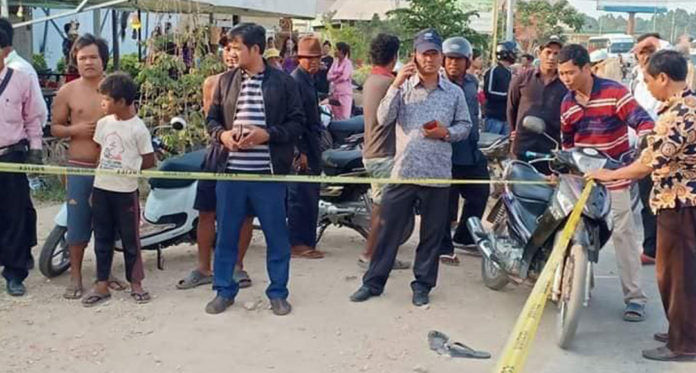 ខេត្តកណ្តាល ៖ កាលពីវេលាម៉ោង៣ និង៣០នាទីសៀល ថ្ងៃទី១២ ខែមីនា ឆ្នាំ២០១៩ ជើងកាងប្រចាំភូមិម្នាក់ បានផឹកស្រាស្រវឹងធ្លាក់ភ្នែក ក៏បានដើរទៅវាយយុវជន២នាក់ ដែលកំពុងចូលហូបមីហឹរនៅក្នុងហាង ជាហេតុធ្វើឱ្យយុវជនទាំង២នាក់នោះខឹង ក៏ទៅហៅបក្ខពួក២នាក់ទៀត សរុប៤នាក់ មកព្រួតវាយកាប់ចាក់ទៅលើជនរងគ្រោះ បណ្តាលឱ្យស្លាប់នៅនឹងកន្លែង បង្កឱ្យមានការភ្ញាក់ផ្អើលឡើងនៅចំណុចខាងមុខផ្ទះរបស់ជនរងគ្រោះ ស្ថិតក្នុងភូមិស្វាយជ្រុំ ឃុំព្រែកដំបង ស្រុកមុខកំពូល។