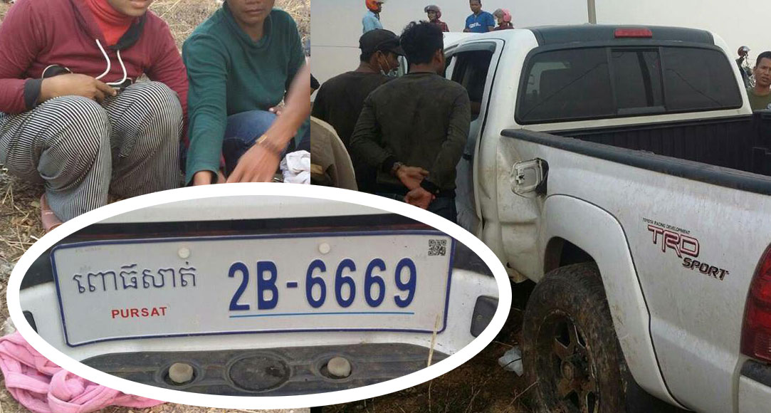 បុរសរងគ្រោះដែលអង្គុយដាក់អង្គប់កណ្តុរកណ្តាលស្រែ បែរជាត្រូវរថយន្តផ្លោងទៅបុកស្លាប់ មានឈ្មោះស៊ុង ស៊ីណា អាយុ៤៨ឆ្នាំ មុខរបរកម្មករសំណង់ មានលំនៅក្នុងភូមិស្វាយ ឃុំសសរស្តម្ភ ស្រុកពួក។ ចំណែករថយន្តបង្កម៉ាក តូយ៉ូតា តាកូម៉ា ពណ៌ស ពាក់ស្លាកលេខពោធិ៍សាត់ 2B-6669 បើកបរដោយបុរសម្នាក់មិនស្គាល់អត្តសញ្ញាណ។