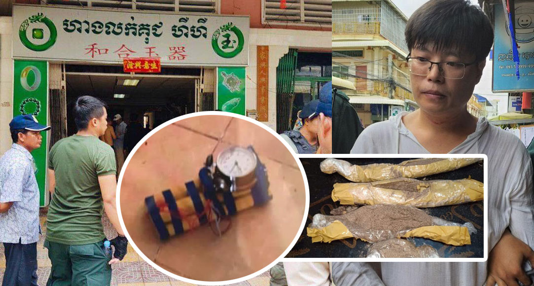 ភ្នំពេញ ៖ បុរសជនជាតិចិនម្នាក់ បានស្ពាយកាបូបភ្ជាប់ជាមួយនឹងគ្រាប់បែកច្នៃចំនួន៥គ្រាប់ ដើរចូលទៅក្នុងហាងចិនមួយកន្លែង បំណងគំរាមថៅកែហាងដែលជាជនជាតិចិនដូចគ្នា ពីរឿងជម្លោះចូលហ៊ុនរកស៊ីជាមួយគ្នា បង្កឱ្យមានការភ្ញាក់ផ្អើលដល់សមត្ថកិច្ចខណ្ឌពោធិ៍សែនជ័យ ចុះអន្តរាគមន៍ចាប់ក្របួចជនសង្ស័យជាប់ និងទាក់ទងហៅខាងជំនាញស៊ីម៉ាក់ចុះមកពិនិត្យ ទើបដឹងថា តាមពិតក្នុងគ្រាប់បែកច្នៃនោះ សុទ្ធតែជាដីខ្សាច់ គ្មានរំសេវផ្ទុះបន្តិចសោះឡើយ។